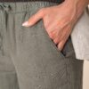 100% lin. Tissé. Aspect délavé. Coupe large. Ceinture avec surpiqûres, élastiquée avec cordon de serrage plat en matière principale ton sur ton et œillet brodé. Finition ceinture intérieure en biais ton sur ton. Poche côté avec une finition en piqûre nervure. Piqûre nervure fourche devant et dos pour plus de renfort. Poches plaquées dos avec surpiqûres. Ourlet invisible bas de vêtement. Vêtement teint en pièce après montage: cette technique peut présenter des variations de couleurs d’un produit à un autre. Vêtement teint en pièce après montage : les couleurs peuvent légèrement varier d’un produit à un autre. Ce produit est susceptible de déteindre au contact avec des surfaces ou vêtements clairs.