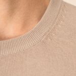 100% coton biologique. Coton peigné. Jauge 12. Coupe ajustée. Bord côte 1 x 1 col, bas de vêtement et bas de manches. Tricoté en « Fully Fashion ». Finition intérieur col avec bande de propreté en matière principale ton sur ton. Traitement anti-bouloche. Poids moyen en taille L : 270 g.