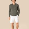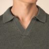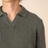 100% coton. Coton peigné. Maille. Jauge 7. Coupe ajustée. Col et patte polo en V sans bouton. Bord côte col 1 x 1. Bord côte 2 x 2 bas de vêtement et bas de manches. Tricoté en « Fully Fashion ». Poids moyen en taille L : 460g.