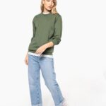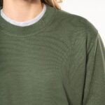 80% coton / 20% polyester. Coton peigné. Molleton gratté. Manches montées. Finition bord-côte encolure, bas de manches et de vêtement.