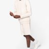 85% coton biologique / 15% polyester recyclé post-consumer. Coton peigné ringspun. Coupe ajustée. Lavé aux enzymes. Molleton gratté 3 fils LSF (Low Shrinkage Fleece : molleton pré-rétréci). 1/2 lune dans le dos. Bord cote 1 x 1 encolure, bas de vêtement et bas de manches. Double surpiqûre bas de manches, emmanchures, bas de vêtement. Simple surpiqûre à l’encolure. Bande de propreté intérieur encolure dos. La couleur Raw Natural se distingue par son aspect brut visuellement texturé, parsemée de fines particules visibles à l’œil nu.