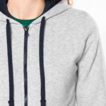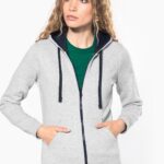 K467 – Sweat-shirt zippé capuche contrastée femme