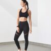 87% polyester / 13% élasthanne. Legging avec tissu opaque et extensible. Large ceinture avec poche intérieure. Reste en place même lors de squats. Empiècements en tulle fine sur l’avant et l’arrière de la cuisse. Découpes laser au niveau des mollets, devant et derrière. Étiquette détachable.