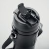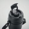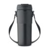Gobelet à double paroi en acier inoxydable avec couvercle en PP (couvercle incluant une paille rétractable) et sangle de transport en PU. Anti fuite. Capacité : 700 ml.