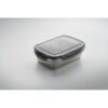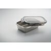Boîte à lunch en acier inoxydable recyclé avec couvercle en PP et fermeture à fermoir sur 4 côtés. Capacité : 850 ml.
