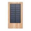 Power bank 4000 mAh en bambou et panneau solaire. Capacité pour l’utilisation d’un smartphone, 2 sorties USB DC5V/1A. Comprend un voyant lumineux et un câble USB avec prise micro usb. Le bambou est un produit naturel, et présente de légères variations de couleur, de décoration et de tailles.