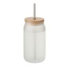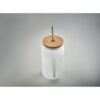 Gobelet avec revêtement spécial pour la sublimation et couvercle en bambou. Paille en acier inoxydable incluse. Capacité : 400 ml. Le bambou est un produit naturel, et présente de légères variations de couleur, de décoration et de tailles.