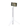 Trépied pliable et selfie stick en plastique ABS et acier inoxydable avec support réglable pour téléphone portable. Télécommande sans fil pour l’obturateur incluse. Matieres : : Acier inoxydable , Plastique (ABS).