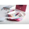 Tour de cou en polyester avec mousqueton en métal. Impression en sublimation sur une face. Quantité minium : 100 pcs. Matieres : : Polyester , Métal.