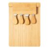 Planche à découper en bambou avec 4 couteaux à fromage en acier inoxydable sur support magnétique pliable. Matieres : : Bambou , Acier inoxydable.