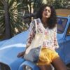 100% coton biologique. Sac avec impression vague pouvant être porté à la main ou à l’épaule.