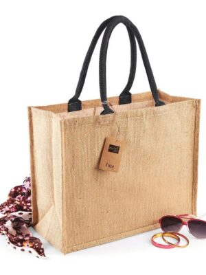 Sac en jute laminé et anses en coton. Longueur de l’anse : 55 cm.