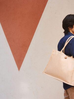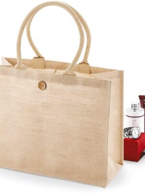 JuCo laminé 72% jute / 28% coton : mélange de jute et de coton pour une personnalisation facile. Poignées en coton.