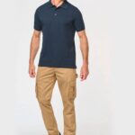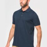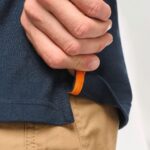 Coloris unis : 60% coton biologique / 40% polyester recyclé. Coloris Oxford Grey : 90% coton biologique / 10% viscose. Tissu maille piquée. Lavable à 60°C. Coupe droite. Col et bas de manches en bord-côte 1×1 avec bande de propreté chevron contrastée orange. Patte 3 boutons ton sur ton. 1ère boutonnière horizontale. Fentes latérales avec bande chevron contrastée orange. Finition double aiguille bas de vêtement. Etiquette de marque Tear Away pour faciliter la personnalisation. Couture renforcée aux épaules, pour une meilleure résistance.