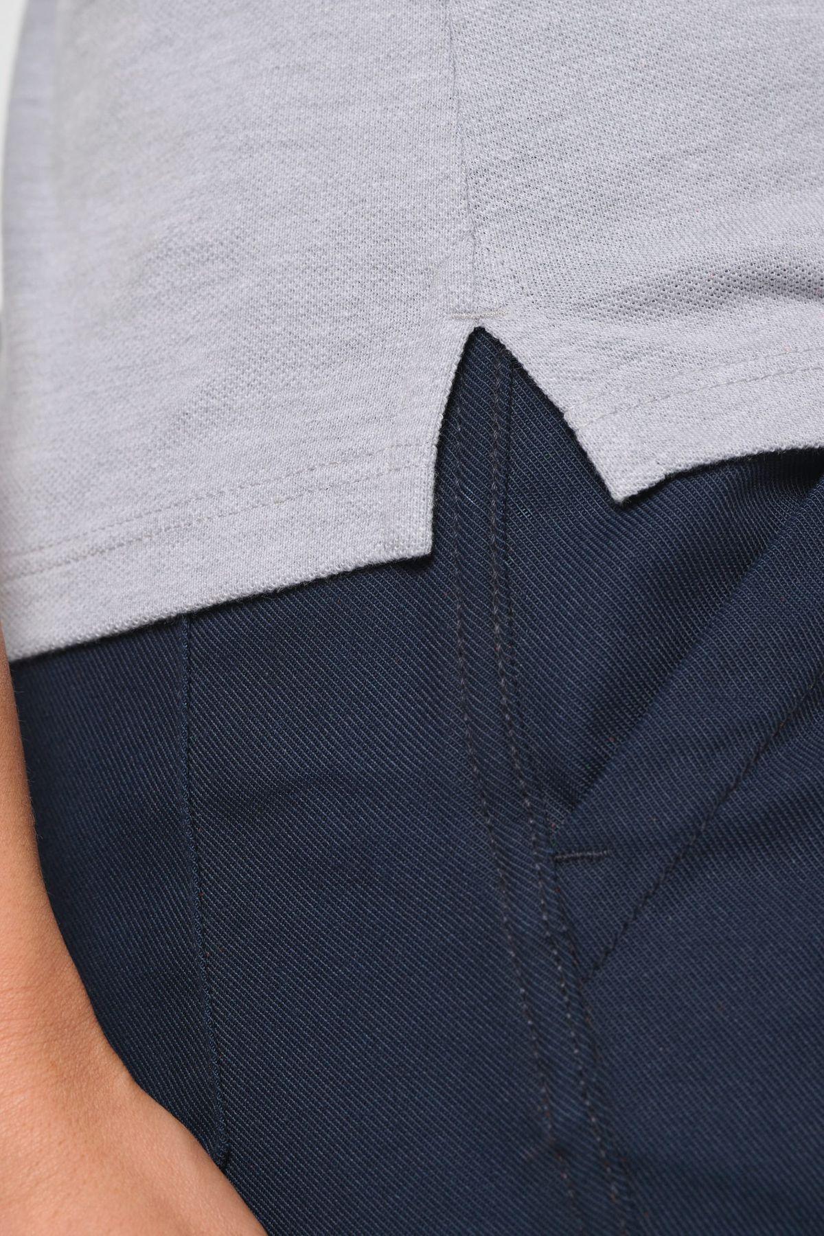 65% polyester / 35% coton. Coton peigné maille piquée. Lavable à 60°C. Traitement antiboulochage. Patte 3 boutons avec bande intérieure contrastée. Col en bord-côte avec bande de propreté. Passepoil contrasté intérieur col et épaules. Finitions bord-côte avec liseré contrasté au bas de manches. Fentes latérales avec bande chevron contrastée pour plus de confort. Finition double aiguille au bas de vêtement. Idéal pour une utilisation quotidienne.