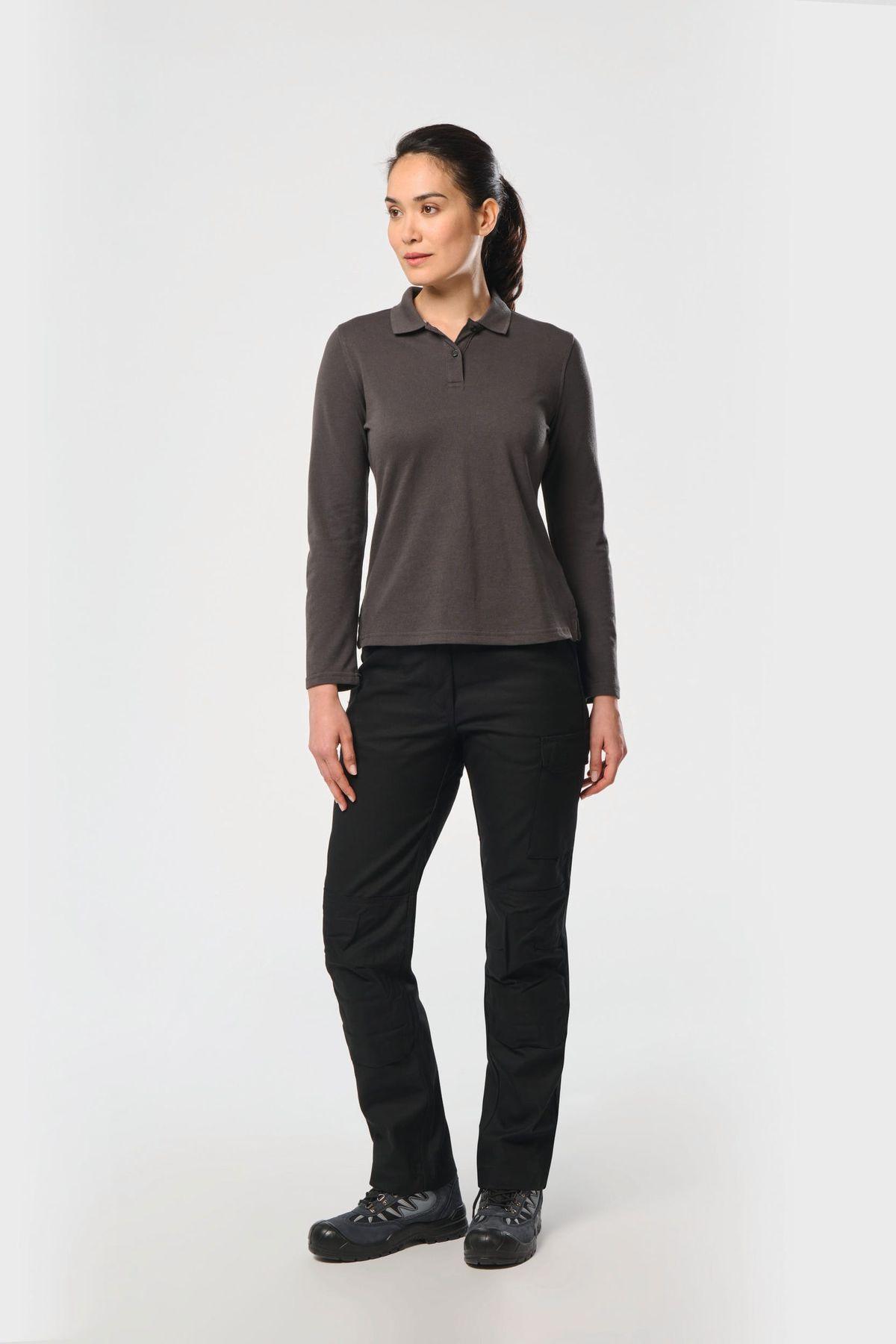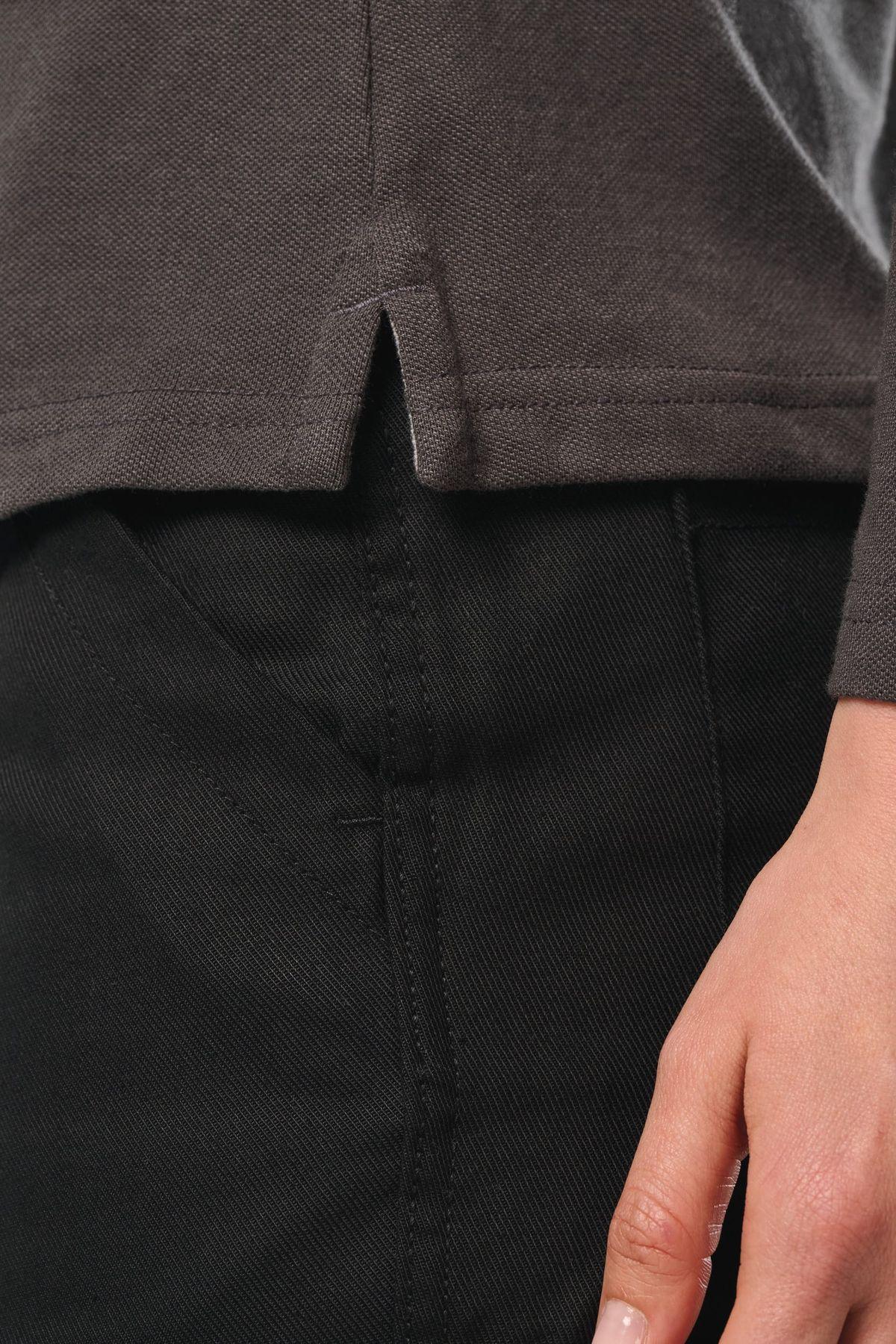65% polyester / 35% coton. Coton peigné maille piquée. Lavable à 60°C. Traitement antibactérien et antiboulochage. Patte de boutonnage col 2 boutons ton sur ton. Col en bord-côte avec bande de propreté contrastée. Fentes latérales avec bande contrastée pour plus de confort. Finition double aiguille bas de manches et de vêtement. Convient pour un usage professionnel.