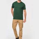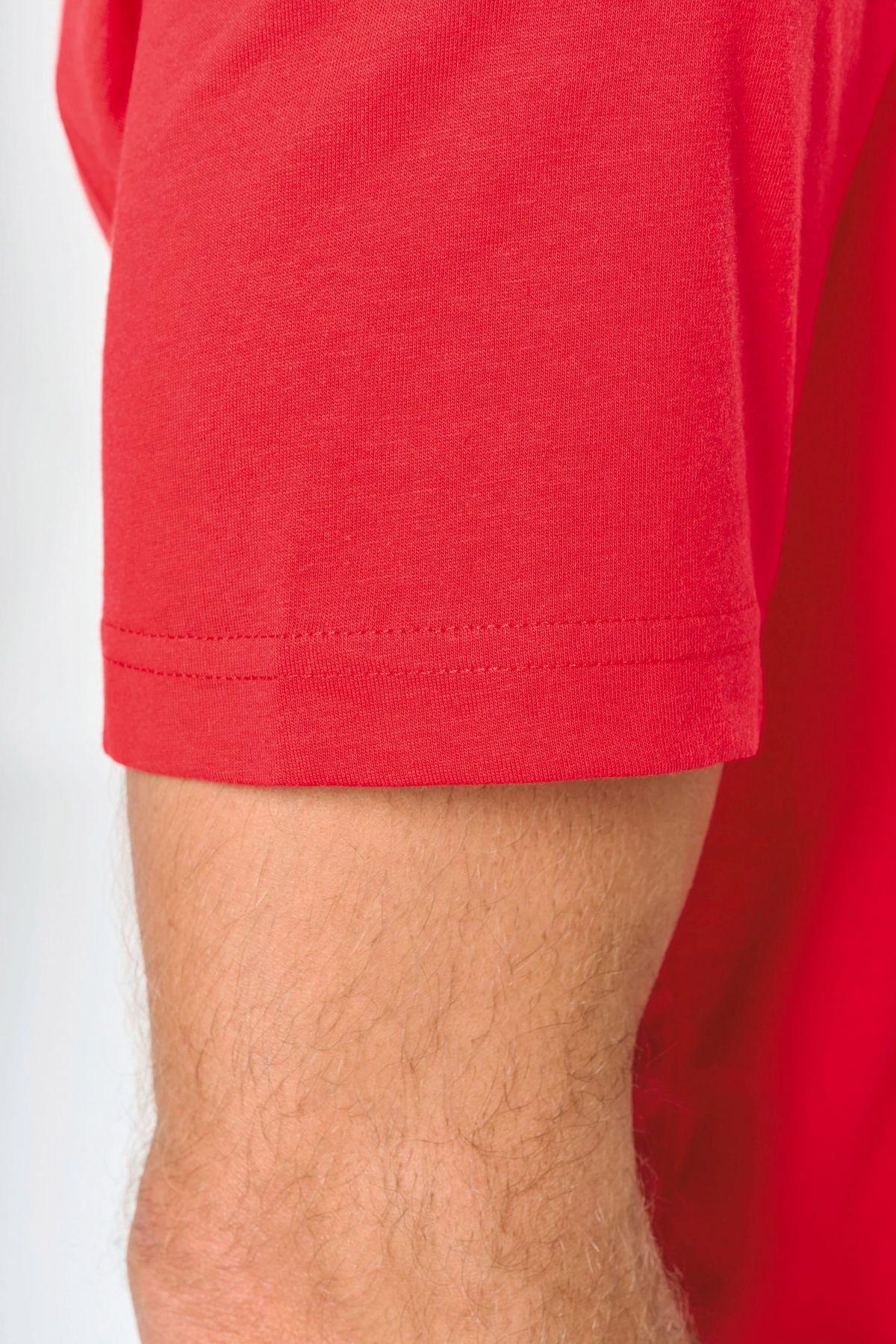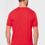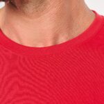 Coloris unis : 60% coton biologique / 40% polyester recyclé. Coloris Oxford Grey : 90% coton biologique / 10% viscose. Tissu doux, lavage aux enzymes. Lavable à 60°C. Coupe droite. Encolure ronde avec bord-côte 1×1. Bande de propreté chevron contrastée orange dans l’encolure (prolongement dos-épaule sauf pour le coloris blanc). Couture renforcée aux épaules. Etiquette de marque Tear Away pour faciliter la personnalisation.