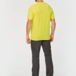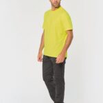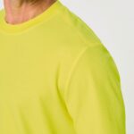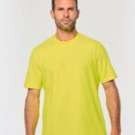 60% coton / 40% polyester recyclé. Coton peigné. Maille piquée interlock. Lavage industriel et/ou lavage domestique 60°C. Coupe confort. Col en bord-côte doublé 1×1. Bande de propreté intérieur col. Renforts intérieurs épaules en tissu sergé 65% polyester / 35% coton pour éviter la déformation lors du lavage industriel. Pochette RFID au bas du vêtement sous label. Finition double aiguille bas de manches et de vêtement. EPI Classe II – Normes NF EN ISO 13688:2013 + NF EN ISO 13688/A1:2021 (Vêtements de protection – Exigences générales), NF EN 17353:2020 : Type A (Habillement de protection – Équipement de visualisation améliorée pour des situations à risque modéré – Méthodes d’essai et exigences), NF EN ISO 15797:2018 (Textiles – Méthodes de blanchissage et de finition industriels pour les essais des vêtements de travail) : Blanchissage industriel professionnel – Méthode de lavage programme 8 avec finition en tunnel uniquement. Etiquette de marque tissée.