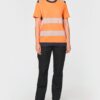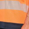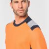 50% coton / 50% polyester recyclé. Coton peigné. Maille piquée. Traitement anti boulochage. Lavage 60°C (25 cycles). Coupe droite. Empiècements épaules contrastés avec bande segmentée rétro réfléchissante de 7 cm. Col doublé 100% polyester recyclé en bord côte 1×1. Empiècement dessous de bras contrasté et micro aéré en birdseye 100% polyester recyclé. 2 bandes segmentées rétro réfléchissantes de 7 cm devant et dos. Bas de vêtement contrasté. Finitions bas de manches et bas de vêtement double aiguille. Certifications en cours : EPI Classe II. Normes NF EN 13758-1+A1:2007 + NF EN 13758-2+A1:2007 : Protection UPF40+ (Propriété de protection contre le rayonnement UV solaire), NF EN ISO 13688:2013 + NF EN ISO 13688/A1:2021 (Vêtements de protection – Exigences générales), NF EN ISO 20471:2013 + NF EN ISO 20471/A1:2017 : Classe 1 pour la taille XS – Classe 2 de la taille S à 6XL (Vêtements à haute visibilité – Méthodes d’essai et exigences), RIS-3279-TOM Issue 2:2019 uniquement pour la couleur Hi Viz Orange/Navy Classe 2 (Norme de l’industrie ferroviaire). Etiquette de marque détachable.