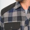 100% coton. Tissu sergé. Coupe Regular. 2 poches poitrine avec rabat contrasté et fermées par boutons pression métal de couleur noire. Fermeture devant et bas de manches par boutons pression métal de couleur noire. Empiècements épaules et coudes de couleur noire pour tous les coloris. Bas de vêtement arrondi. Lien d’accrochage intérieur col en chevron. Etiquette de marque détachable.