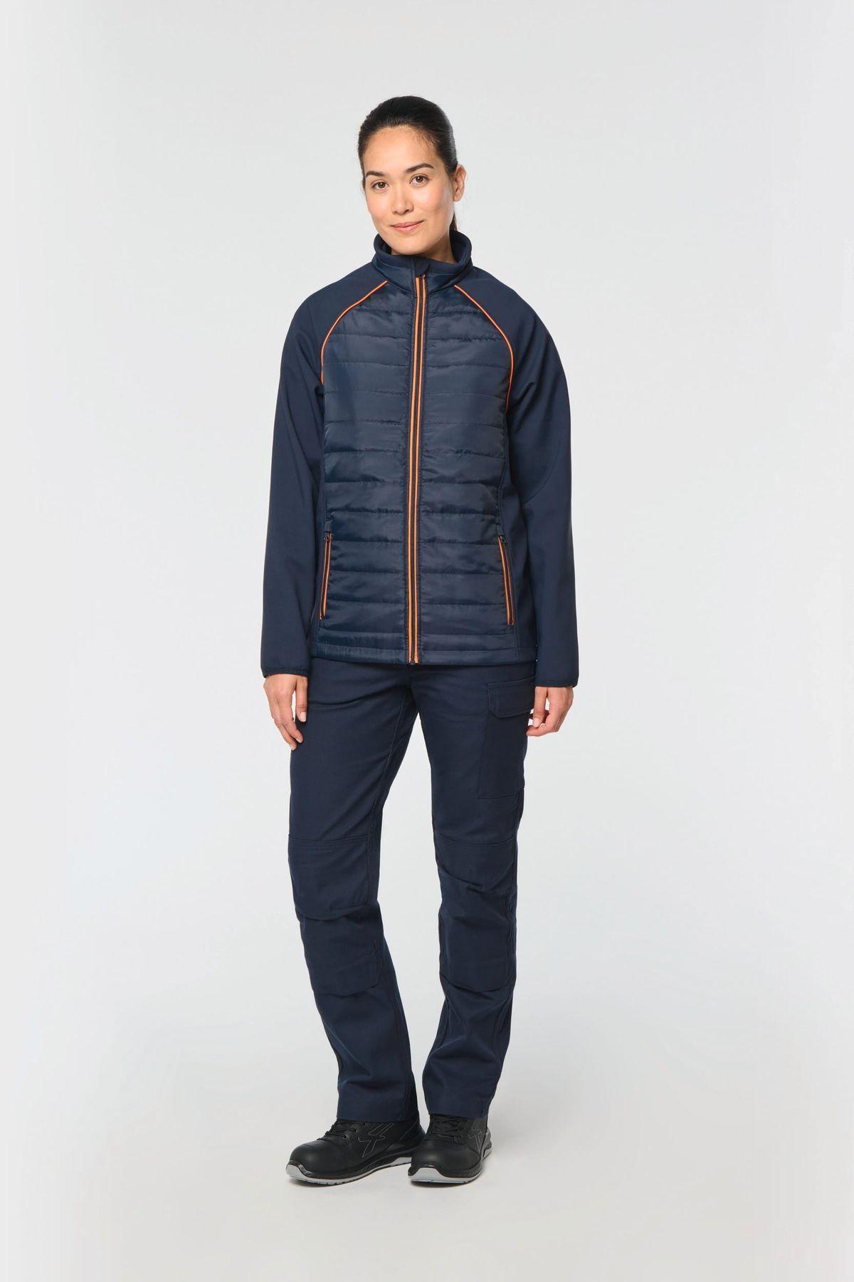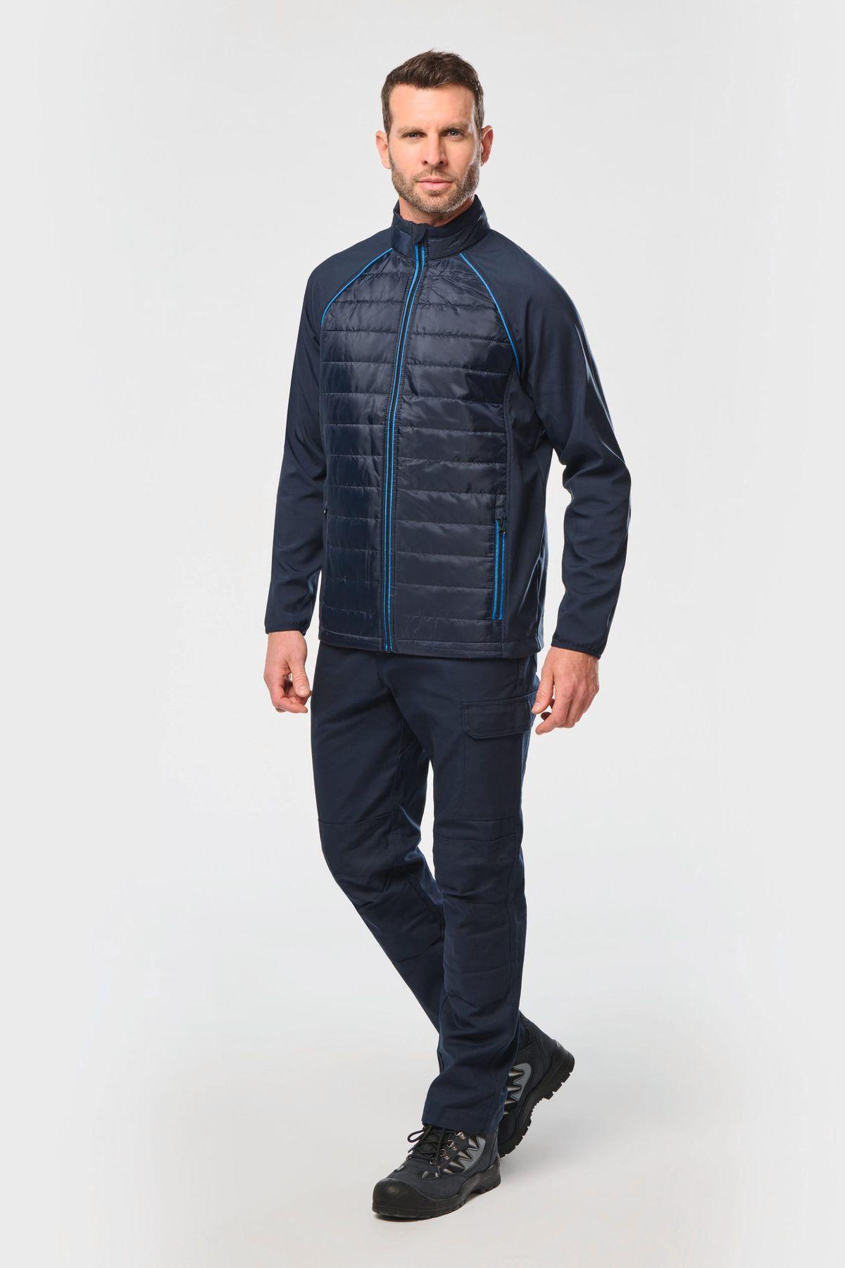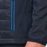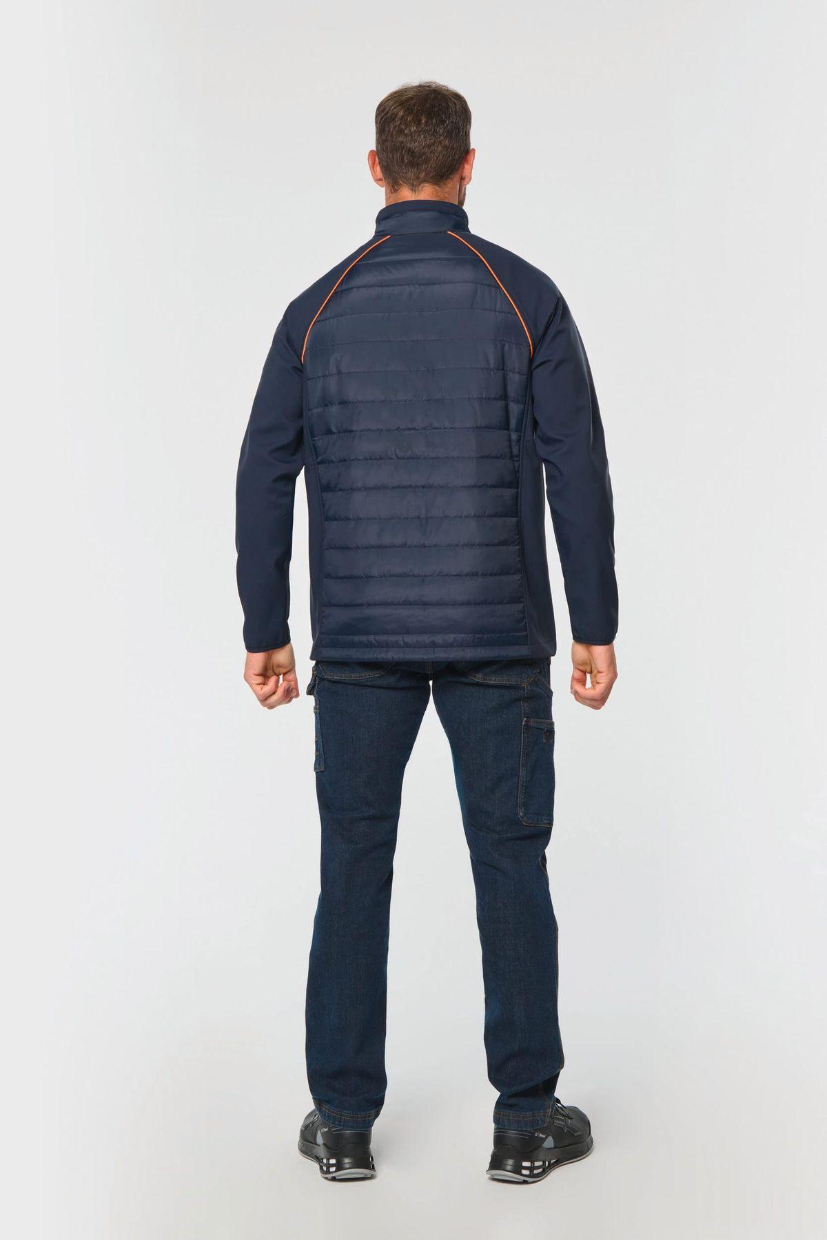 100% polyester. Softshell 2 couches, tissu extensible dans les 4 sens pour plus d’aisance avec couche intérieure polaire pour plus de chaleur sur les manches et les épaules. Devant et dos : 100% polyester 75 g taffetas 230T avec enduction. Tissu traité déperlant. 2 poches avant zippées. 1 étiquette nom fixée intérieur gauche. Passepoil contrasté aux emmanchures et intérieur col. Fermeture zippée avant et poches contrastées. Zip invisible de personnalisation au bas de vêtement. Idéal pour une utilisation quotidienne.