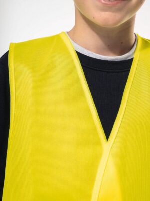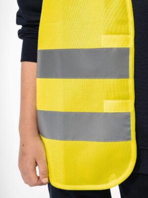100% polyester. Maille polytricot. Traitement easy care. Lavage 40°C (25 cycles). Coupe ample. 2 bandes rétro réfléchissantes horizontales cousues de 5 cm sur corps. Fermeture par bandes auto agrippantes (1 verticale et 2 horizontales) pour un réglage optimal. Lien d’accrochage intérieur col. Biais de finition ton sur ton. EPI Classe II. Normes NF EN ISO 13688:2013 + NF EN ISO 13688/A1:2021 (Vêtements de protection – Exigences générales). NF EN 17353:2020 : Type AB3 (Habillement de protection – Équipement de visualisation améliorée pour des situations à risque modéré). Etiquette de marque détachable.