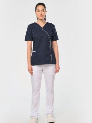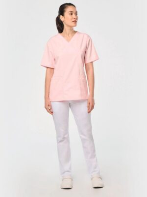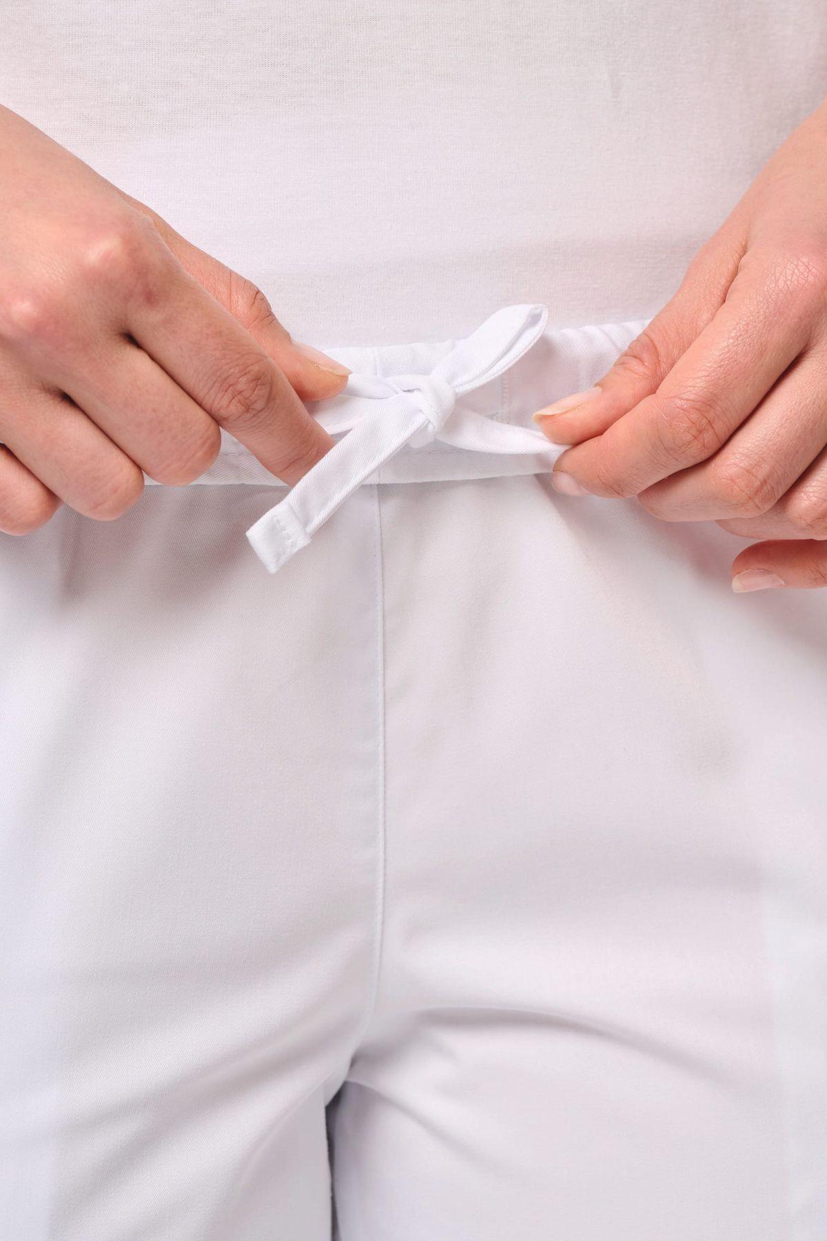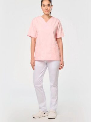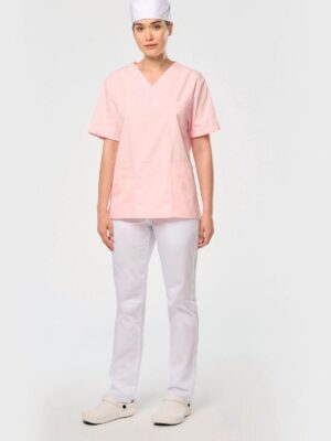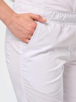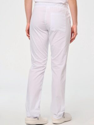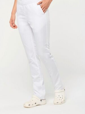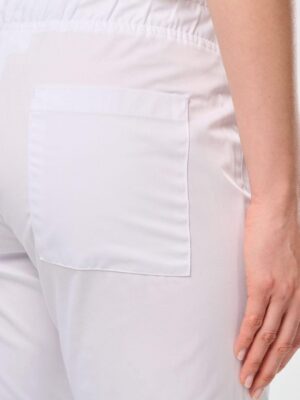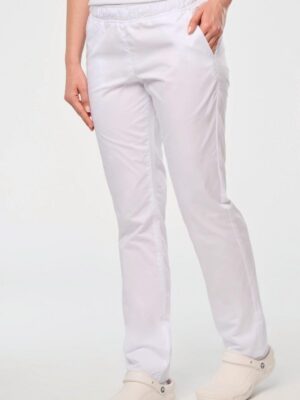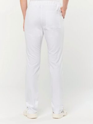 65% polyester / 35% coton. Tissu twill polycoton. Lavage 60°C. 2 poches italiennes côtés + 1 poche plaquée arrière avec renforts. Ceinture élastiquée avec cordon de serrage à l’intérieur. Etiquette de marque Tear Away.