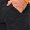 65% polyester / 35% coton. Tissu sergé. Lavage 60°C. Coupe straight. 2 poches devant. 2 poches à soufflet côtés à rabat avec fermeture par boutons pression. 1 poche passepoilée arrière fermée par un zip. Découpes de renfort aux genoux en tissu principal ton sur ton. Ceinture élastiquée côtés avec passants renforcés dont passant milieu dos plus haut (8cm). Fermeture zippée et boutonnée avec bouton plastique. Bas de jambes élastiqué. Triple piqûres à l’entrejambe, côtés et fourche devant et dos pour plus de résistance. Etiquette de marque détachable.