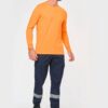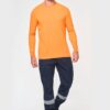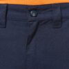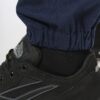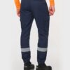65% polyester / 35% coton. Tissu sergé. Lavage 60°C. Coupe straight. 2 poches devant. 2 poches à soufflet côtés à rabat avec fermeture par boutons pression. 1 poche passepoilée arrière fermée par un zip. Découpes de renfort aux genoux en tissu principal ton sur ton. Ceinture élastiquée côtés avec passants renforcés dont passant milieu dos plus haut (8cm). Fermeture zippée et boutonnée avec bouton plastique. Bas de jambes élastiqué. La bande rétroréfléchissante est certifiée par la norme EN17353:2020 jusqu’à 30 cycles de nettoyage à 60°C. Triple piqûres à l’entrejambe, côtés et fourche devant et dos pour plus de résistance. Etiquette de marque détachable.