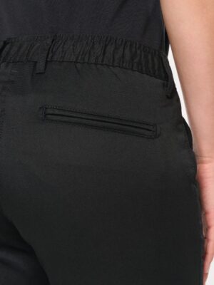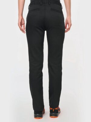 65% polyester / 35% coton. Lavable à 60°C. 2 poches italiennes côtés. 2 poches passepoilées arrière avec coutures renforcées. Braguette fermeture à glissière et boutonnée. Ceinture élastiquée pour plus de confort et passants. Lien d’accrochage à l’intérieur taille arrière. Idéal pour une utilisation quotidienne.