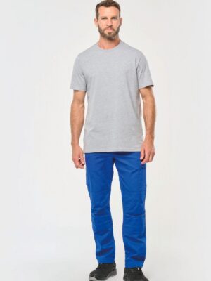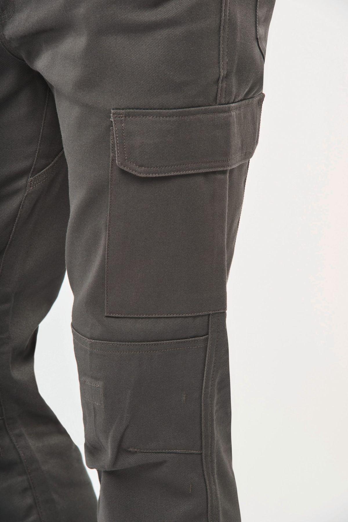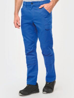 60% coton / 40% polyester. Tissu sergé. Lavage 60°C. Coupe droite. 2 poches devant (sacs de poches en tissu principal). 1 poche à rabat avec fermeture velcro côté gauche au porté, 1 double poche outil ouverte à droite au porté, 2 poches plaquées arrière, 2 poches genouillères ton sur ton avec velcro et rabat intérieur pour maintenir et adapter la genouillère. Ceinture en partie élastiquée avec passants. Fermeture zippée et boutonnée. Bouton plastique. Soufflet à l’entrejambe pour plus de résistance et une parfaite liberté de mouvement. Double piqûres coutures côtés, triple coutures soufflet et fourche devant et dos. Genouillère non fournie. Surpiqûres nervures à l’entrejambe. Ourlet bas de jambe. Etiquette de marque détachable.