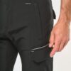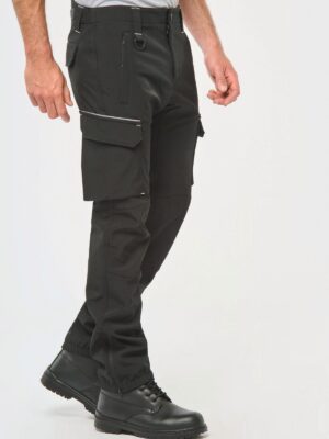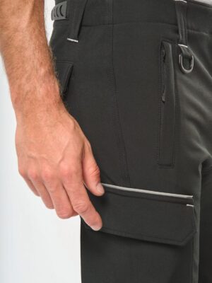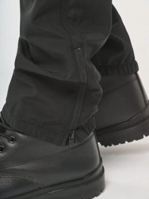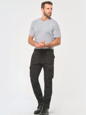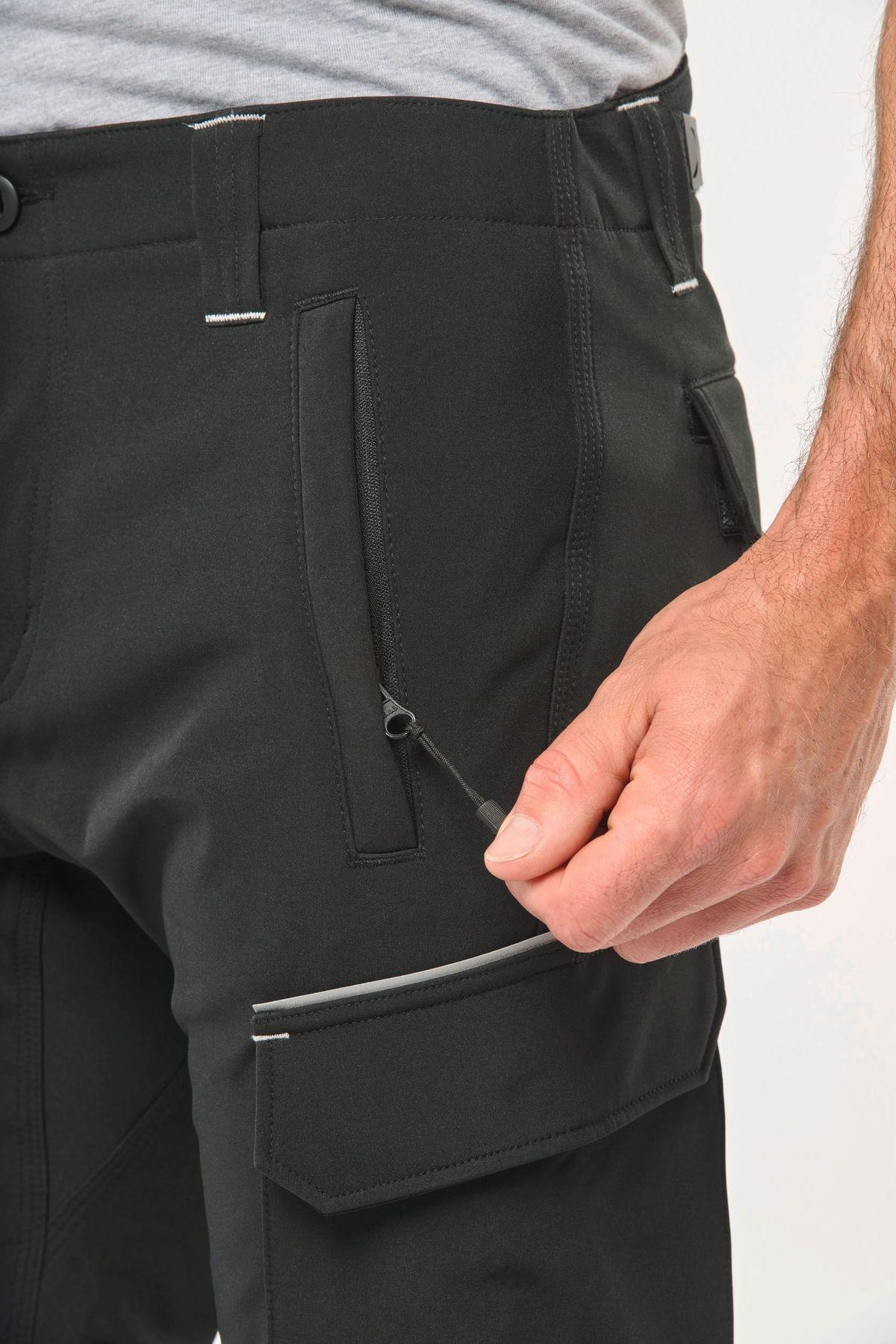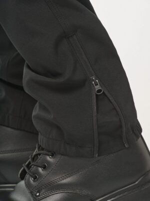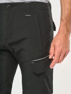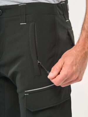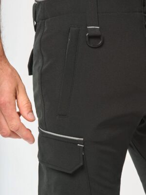 95% polyester / 5% élasthanne. Tissu contrecollé 3 couches respirant 3000 g/m² /24 h et imperméable 8000 mm. Extérieur : 95% polyester / 5% élasthanne. Intermédiaire : membrane respirante. Couche intérieure : micropolaire. Coupe droite. 2 poches passepoilées et zippées avec tire-zip devant. 2 poches côtés cargo à soufflet avec passepoil contrasté et rabat avec fermeture velcro. 2 poches arrière avec rabat et fermeture velcro. Empiècement préformé genoux pour plus de confort. Ceinture réglable grâce à des bandes auto-agrippantes avec passant. Dos de la ceinture rehaussé et bande élastique intérieure antiglisse pour un maintien optimal. Anneau en plastique fixé sur un des passants à l’avant droit au porté. Fermeture zippée et bouton retenu par une sangle en chevron afin de faciliter et renforcer la fermeture. Bas de jambe élastiqué et fentes à soufflet zippées côtés. Soufflet renforcé à l’entrejambe pour plus de confort et une parfaite liberté de mouvement. Points de renforts contrastés. Triple surpiqûres côtés, entrejambe, fourche devant + dos et soufflet entrejambe. Etiquette de marque détachable.