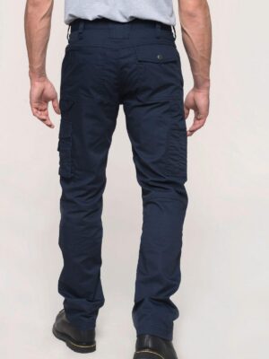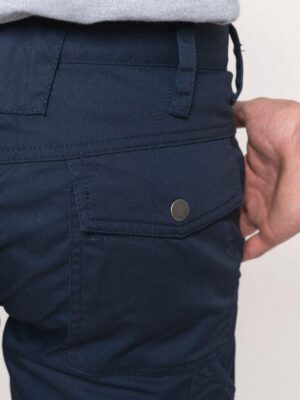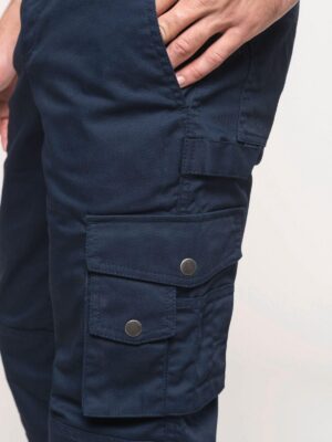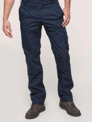 65% polyester / 35% coton. Fermeture zippée avec 1 bouton. Couture de l’entrejambe renforcée par une triple surpiqûre. 3 poches avant, 3 poches arrière et 1 poche sur le côté. Genoux préformés.