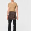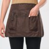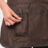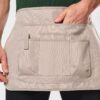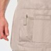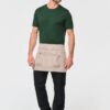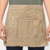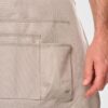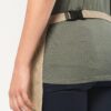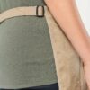 100% polyester recyclé. Tissu Oxford enduit et imperméable 4000 mm. 2 niveaux de poches : 1 grande poche centrale milieu + 4 poches dont 1 avec double compartiments et 1 avec patte et bande auto-agrippante. Biais de finition ton sur ton. Lanière et boucle de réglage en plastique recyclé pour ajuster la taille du tablier. Hauteur totale tablier = 35 cm. Largeur bas du tablier = 54 cm. Étiquette détachable.