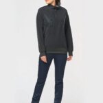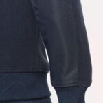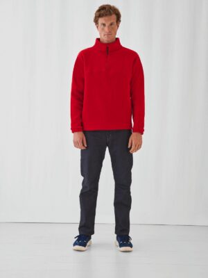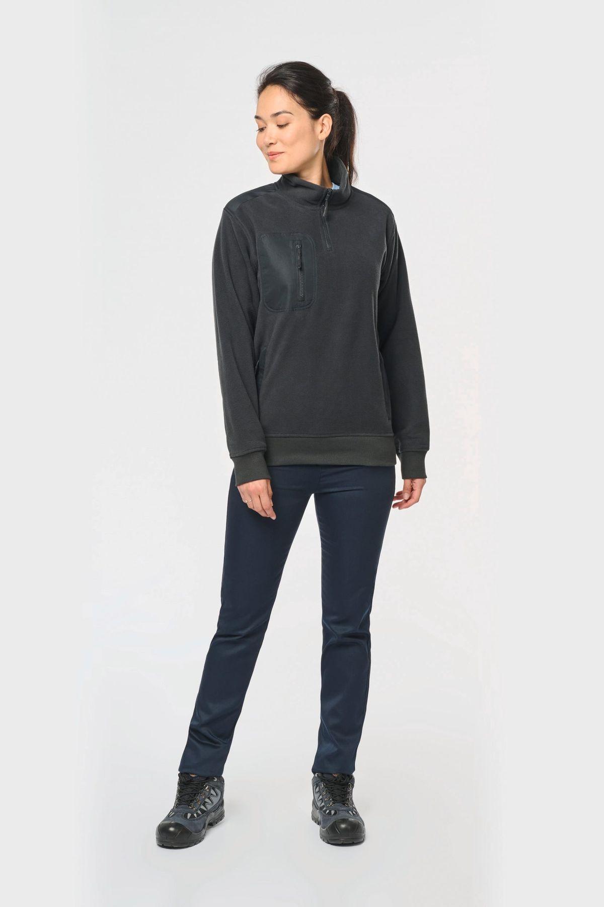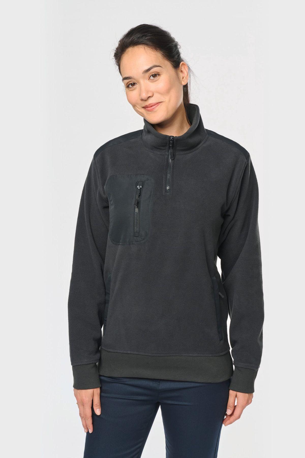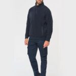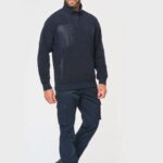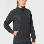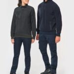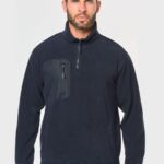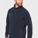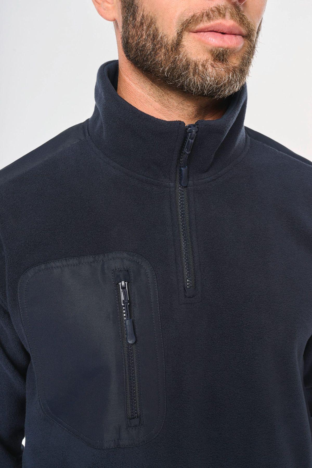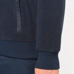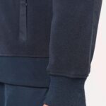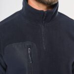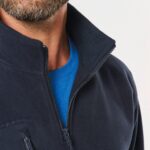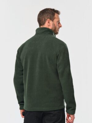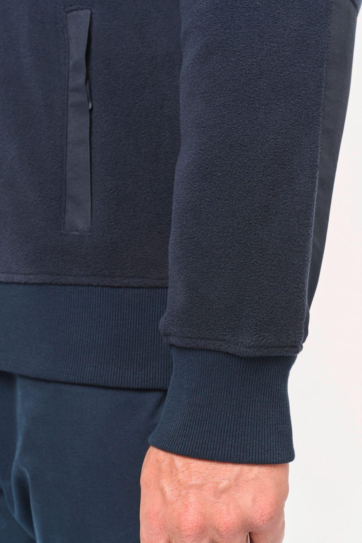 100% polyester recyclé post-consumer. Coupe droite. 2 poches zippées passepoilées en taslan devant avec tire-zip. 1 poche poitrine arrondie zippée avec tire-zip côté droit au porté en taslan avec surpiqûres ton sur ton. Col doublé avec côte 2 x 2 et zip en plastique recyclé + lien d’accrochage intérieur col. Empiècements de renfort épaules et avant bras en taslan. Bord-côtes tubulaire en rib 2 x 2 aux bas de manches et de vêtement. Etiquette de marque détachable.