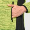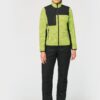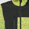 100% polyester recyclé. Maille polytricot grattée. Lavage 40°C. Empiècements en softshell contrastée 2 couches 100% polyester avec traitement déperlant sur haut du corps devant et dos, côtés et dessous de manches. Fermeture zippée avec protège menton. 2 poches côtés zippées. 1 poche plaquée poitrine contrastée zippée côté droit au porté. 2 poches intérieures. Finitions biais contrastés au bas de manches et bas de vêtement. Etiquette de marque détachable.