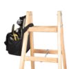 100% polyester. Ce sac peut être utilisé pour transporter des outils pour toute occasion, mais sa forme avec son dos plat et ses poignées spéciales en font la solution idéale pour les travaux sur escabeau. Le sac s’adapte aux échelles doubles classiques et permet à l’opérateur de toujours avoir ses outils à portée de main. Le large compartiment central permet de ranger des outils volumineux comme la perceuse, et les panneaux compartimentés de ranger clés et tournevis. Poche avant porte-objets facilement personnalisable.