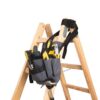 100% polyester. Fourreau porte-outils, avec 8 compartiments et une bande porte-ruban adhésif. La ceinture réglable avec boucle est incluse. Poche avant ouverte facilement personnalisable.