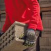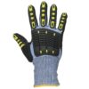 Support tricotĂ© en HPPE, fibre d’acier, basalte, polyester et Ă©lasthanne. Jauge 13. Enduction en sandy nitrile sur la paume et les doigts. Renfort entre le pouce et l’index en sandy nitrile. Renforts en PVC sur le dessus de la main et des doigts. Poignet Ă©lastiquĂ© avec finition en surjet Ă©lastique de couleur variant en fonction de la taille du gant. Produit non lavable. EPI Classe II. Normes NF EN ISO 21420:2020 (Gants de protection – Exigences gĂ©nĂ©rales et mĂ©thodes d’essai), NF EN 388+A1:2018 (Gants de protection contre les risques mĂ©caniques) : Niveaux de performance 4343FP. Poids d’une paire de gants en taille 10 : 212g