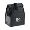 Sac à déjeuner isotherme en RPET 600D avec poche frontale. Capacité 3L. Matériau d’isolation : mousse PE de 2 mm avec feuille d’aluminium.