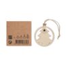 Suspension en bois en forme d’arbre avec cordon de jute comprenant des graines d’épicéa. Présenté dans une enveloppe kraft.
