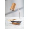 Lampe de bureau multifonctionnelle en bambou et plastique PP recyclé avec chargeur rapide sans fil intégré (15W). Avec modes de lumière chaude, naturelle et froide. Câble de chargeur USB inclus. Matieres : : Bambou , Plastique PP recyclé.