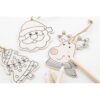 Set d’ornements de Noël à colorier dans une boîte en papier kraft avec un sapin pré-découpé. Comprend 3 décorations en bois avec cordon de chanvre et 4 crayons de couleur. Matieres : : Bois.