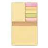 Bloc de notes adhésives 3 pièces avec couverture en carton recyclé. Blocs d’adhésifs jaunes grand et moyen et 5 marqueurs de pages de couleurs assorties.