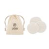 3 pièces de patchs nettoyants réutilisables et lavables pour le visage (diamètre 8cm) en 70% de fibre de bambou et 30 % de coton dans une pochette en coton.