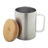 Mug thermos double paroi en acier inoxydable recyclé avec couvercle en bambou, 350 ml. Matieres : : Inox recyclé , Bambou . Passe au lave-vaisselle : Oui – sans les accessoires Passe au micro-ondes : Non.