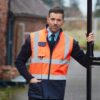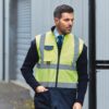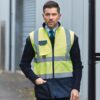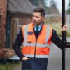 100% polyester. Fabriqué en 3 couches: 1) Extérieur: polyester enduit PU oxford. Imperméable, 2) couche intermédiaire en non-tissé et 3) doublure intérieure en molleton, afin de maximiser la résistance aux intempéries, le confort et la chaleur. L’ourlet bleu marine offre un bon contraste et aide à rester propre. Poche pour téléphone portable à la poitrine avec anneau en D en dessous. Deux poches en bas. Accès à la décoration du logo. Idéal pour le port quotidien au travail. Conforme à la norme EN ISO20471:2013 Catégorie 2.