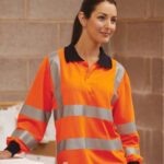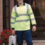 100% Polyester. Deux bandes réfléchissantes de 5 cm de largeur autour du corps et des bras et une sur chaque épaule. Col et poignets côtelés bleu marine contrastés. Patte à 3 boutons. Finition double aiguille. Hi Vis Orange et Hi Vis Yellow conforment à la norme EN ISO20471: 2013 Classe 3. Hi Vis Orange est également corforme à la norme GO / RT 3279.