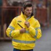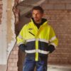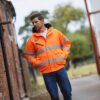 Veste en polyester, fabriquée en tissu rip-stop à carreaux fin, imperméable et respirant. Doublure amovible en laine polaire Sherpa. Bandes rétro-réfléchissantes de 5 cm cousues en double autour du corps et de chaque bras. Deux bandes réfléchissantes sur le haut des épaules. Poche poitrine avec fermeture auto-agrippante étanche. Poches pour stylo et téléphone portable sur le bras gauche. Capuche amovible. Fermeture à glissière double sens. Conforme aux normes EN ISO20471 Catégorie 3.