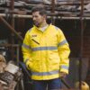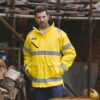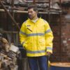 100% polyester rip stop imperméable et respirant. Sous-couche velours détachable. Bandes rétro-réfléchissantes finition double aiguille (larg. 5 cm). Col doublé en velours avec capuche détachable intégrée. Fermeture zippée à double curseur. Poches extérieures bas avec double accès haut et côté, doublées en polaire. Poche stylo et poche mobile sur le bras gauche. Poche poitrine côté droit avec fermeture zippée étanche et poche pour pièce d’identité pouvant être dissimulée. Boucle porte radio à la poitrine côté droit. Espace pour la personnalisation côté cœur et zip de personnalisation invisible sur le bas du vêtement. Conforme aux normes EN ISO 20471 de catégorie 3, EN342:2004 de protection contre le froid et à la norme relative aux “Vêtements de Haute Visibilité” des chemins de fer UK GO/RT 3279 Issue 8:2013 (Hi-Vis Orange uniquement).